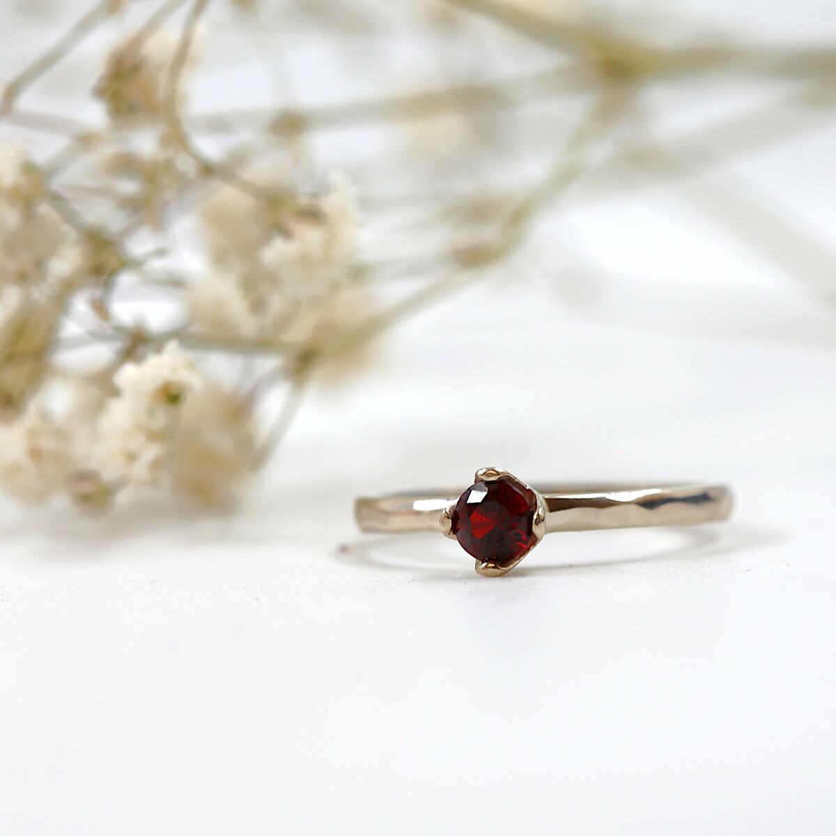 This beautiful ring is dominated by a natural garnet, which with its deep red hue attracts stares and brings energy and passion into your life. Garnet is not only aesthetically charming, but also known for its protective properties and ability to bring strength and positive energy.