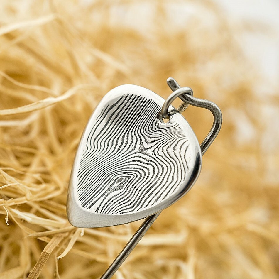 The photos are illustrative of the picks already sold. After ordering we will make you a new one. The magic of damascus steel is that the resulting texture is a little different every time. Once completed, we will send you photos for approval before shipping.