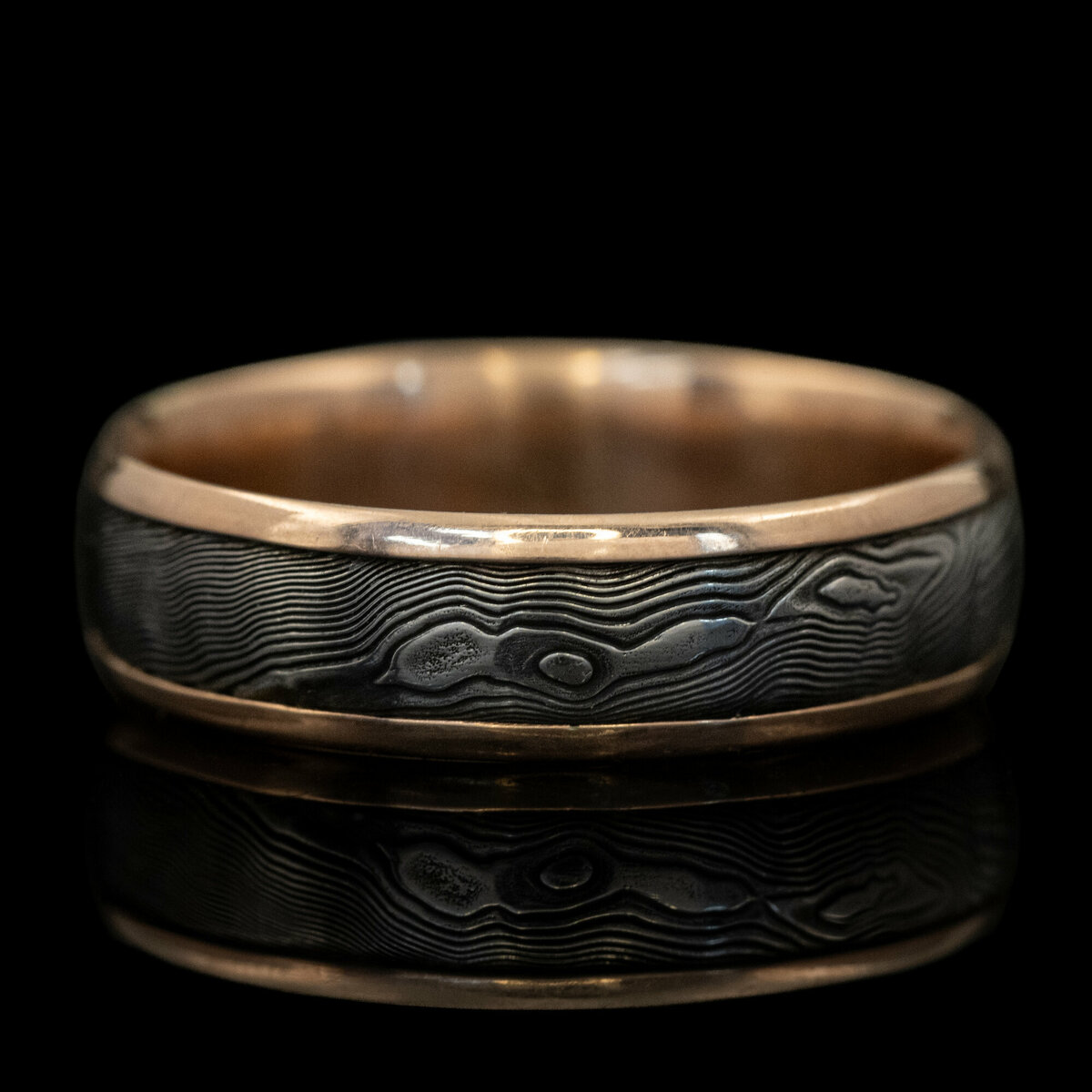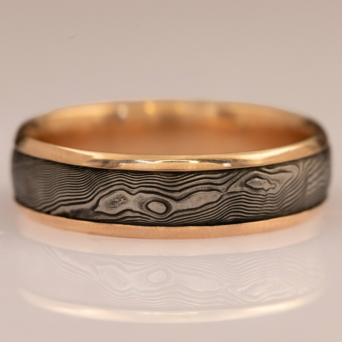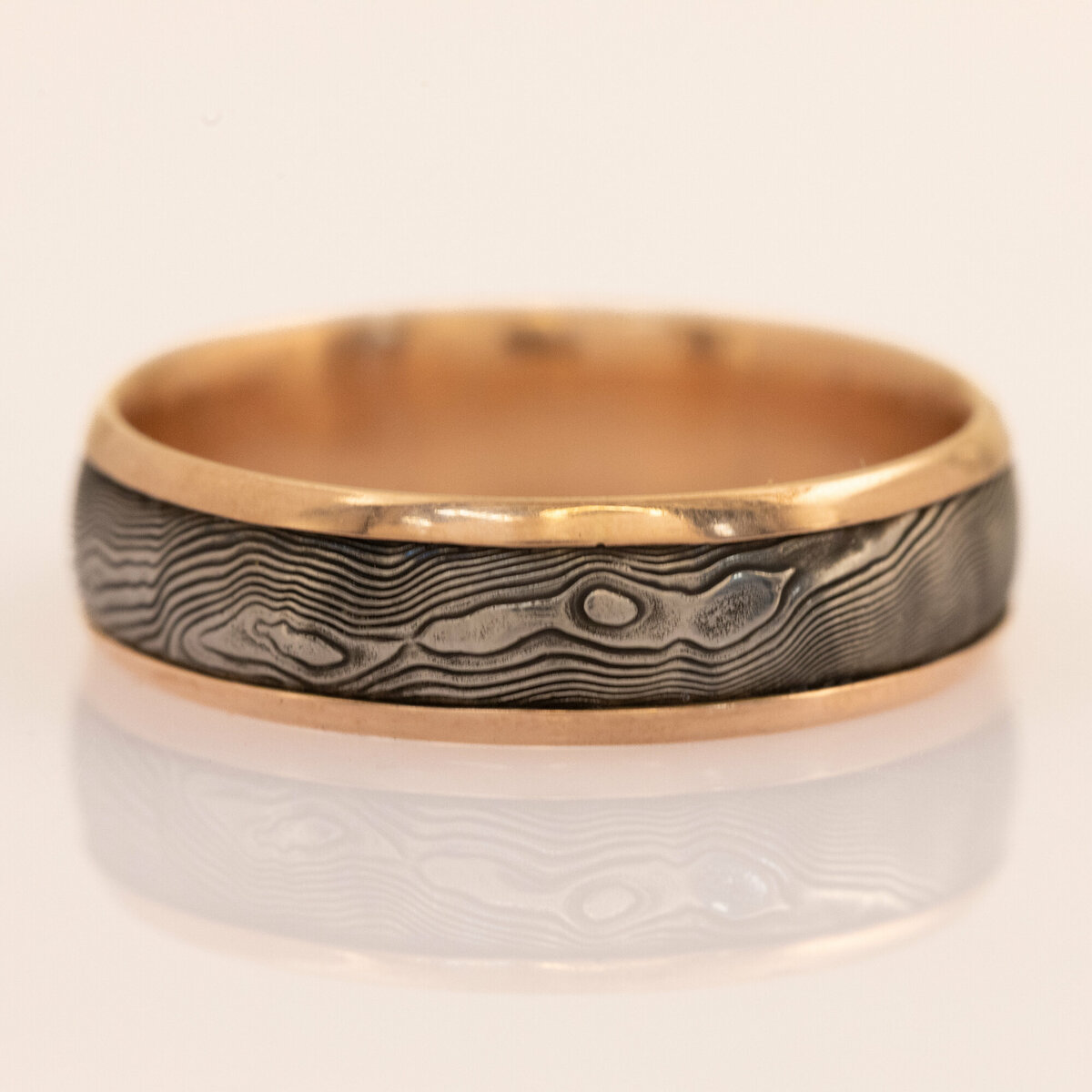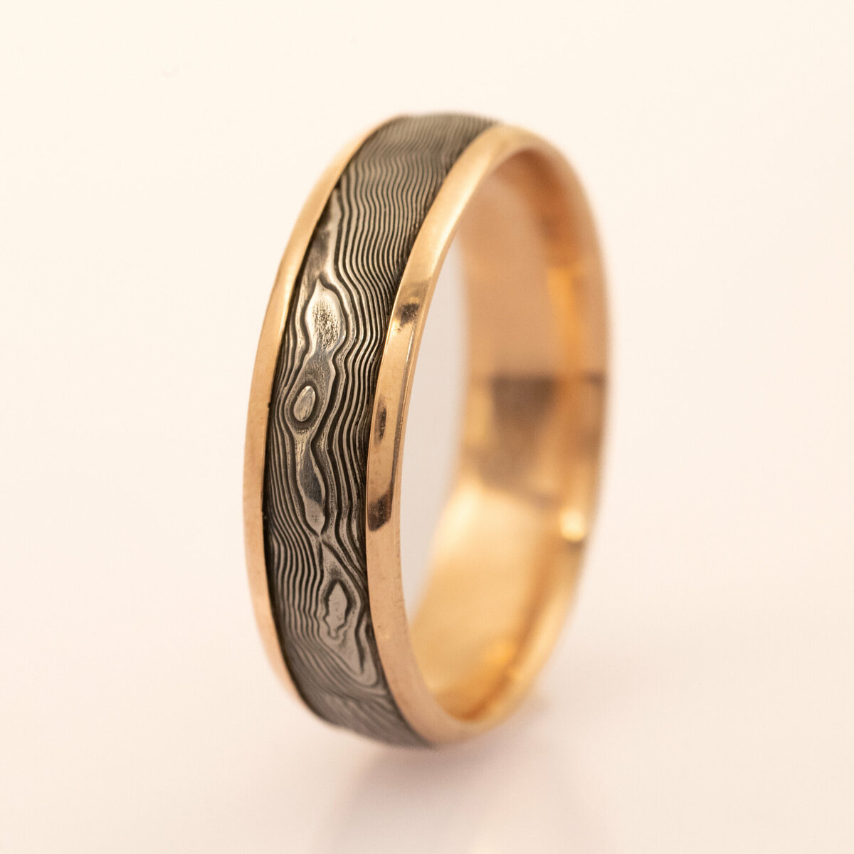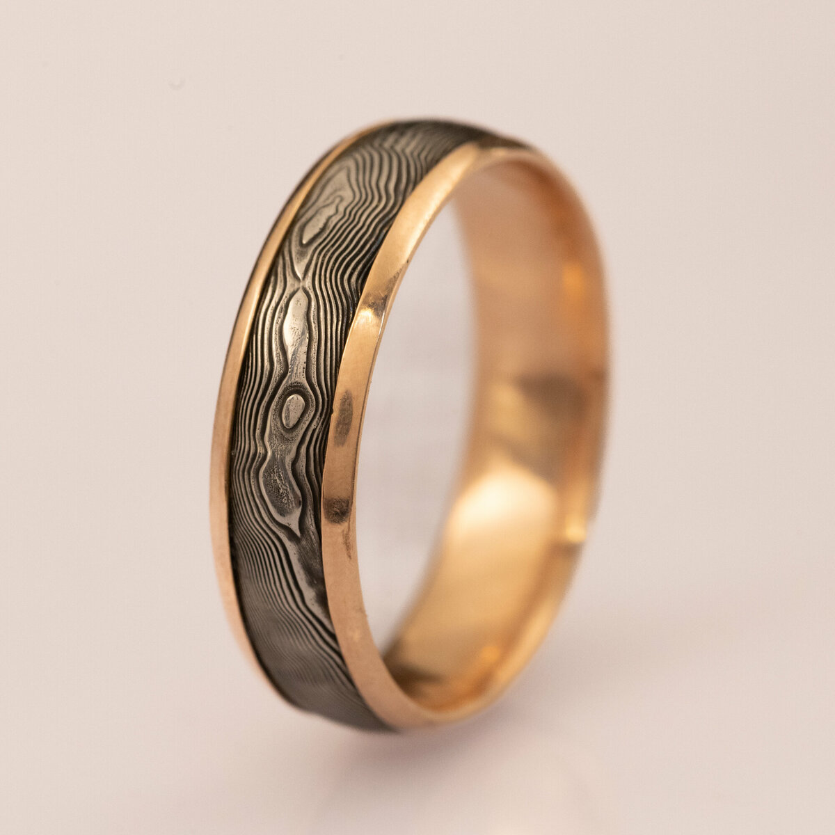 Precious metals can be combined with a stainless steel, titanium or damasteel. Thanks to this combination, the ring gains a mark of attractiveness and uniqueness. A combination of different precious metals creates an amazing MOKUME GANE which is unique for its beautiful structure of blended metals.