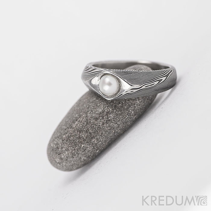 The ring is set with a genuine white river pearl, size 4-7 mm depending on the width of the ring. The pearl is set in a hollow which is mirror polished. This enhances the beauty of the pearl.