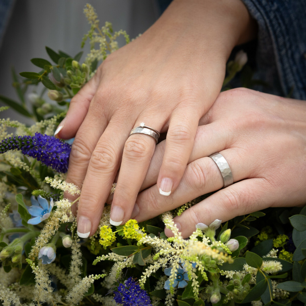 Our rings are handmade with honesty, love and passion for our work in our blacksmith´s workshop. For their production we use damasteel, titanium, stainless steel or precious metals. Because they are handmade, each ring is unique and no two rings are exactly alike. You always get a unique original ring that you can be proud of.