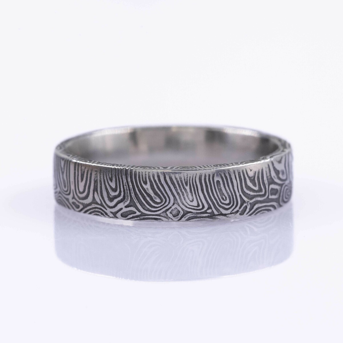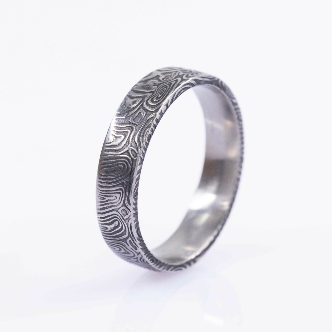Ručně kovaný nerezový snubní prsten z vrstvené oceli damasteel - Prima.