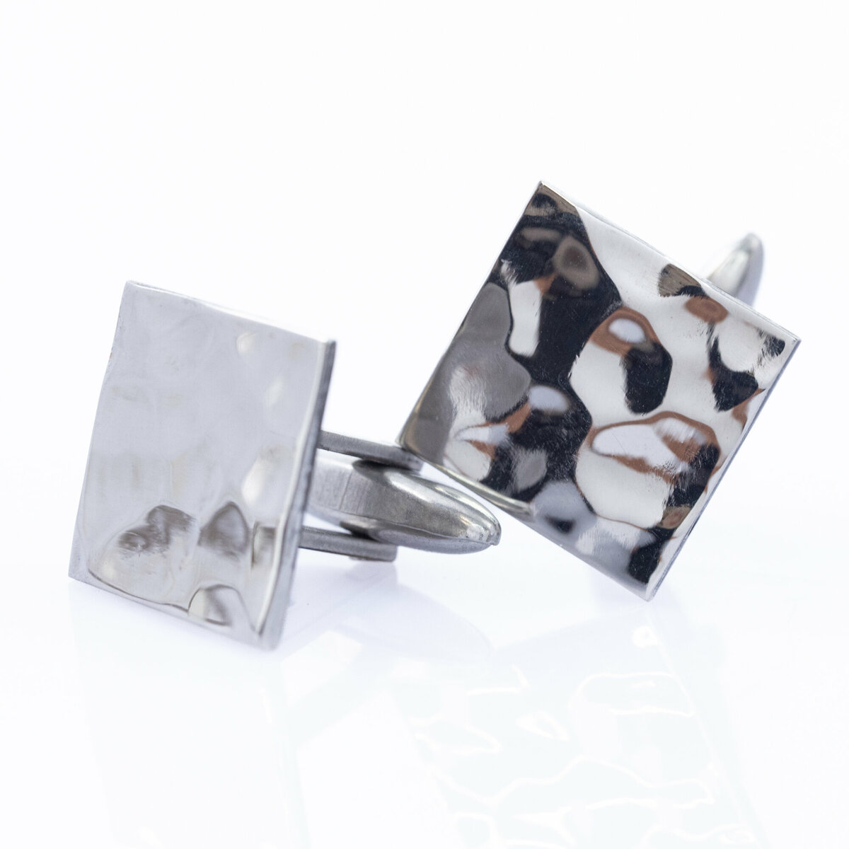 Manžetové knoflíčky ručně kované z nerezové oceli. Tato ocel je bezúdržbová.