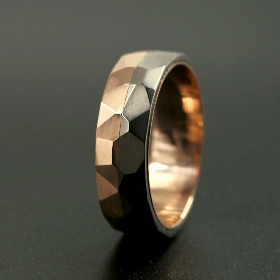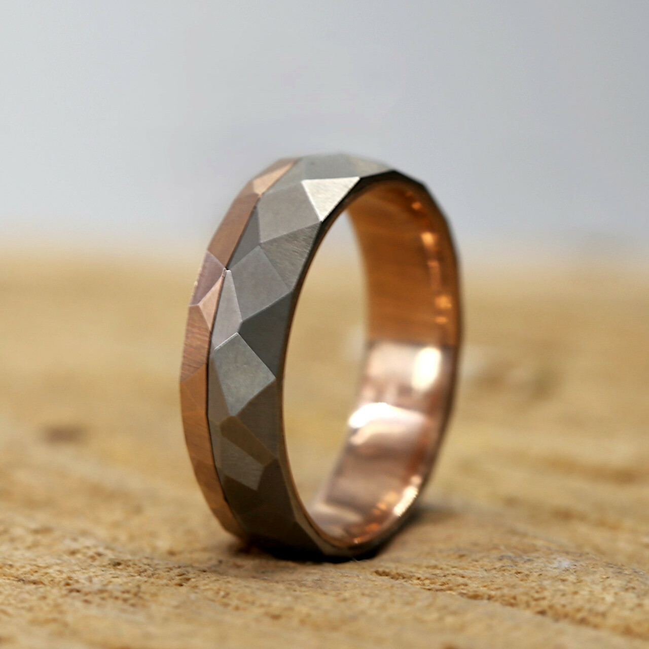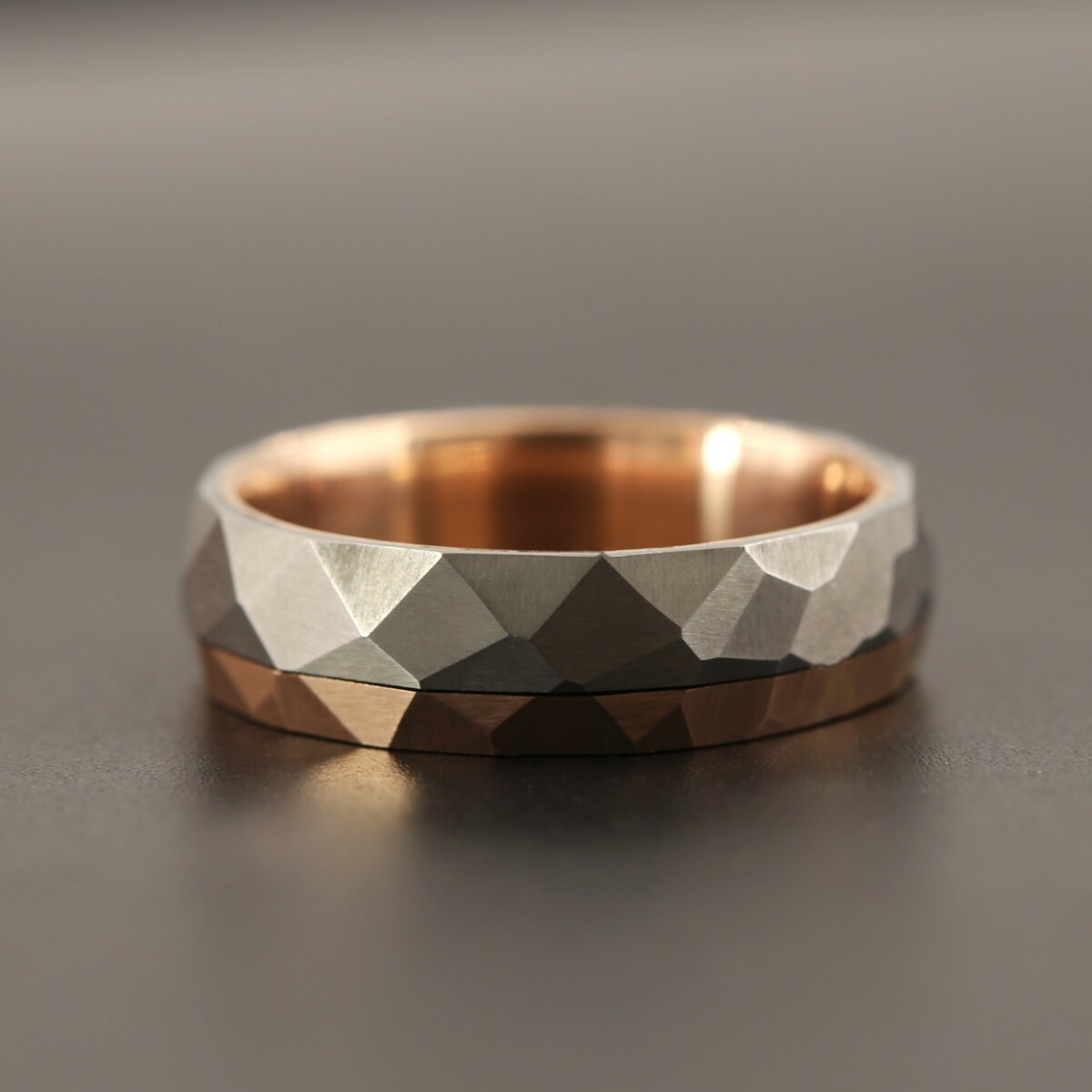 Precious metals can be combined with a stainless steel, titanium or damasteel. Thanks to this combination, the ring gains a mark of attractiveness and uniqueness. A combination of different precious metals creates an amazing MOKUME GANE which is unique for its beautiful structure of blended metals.