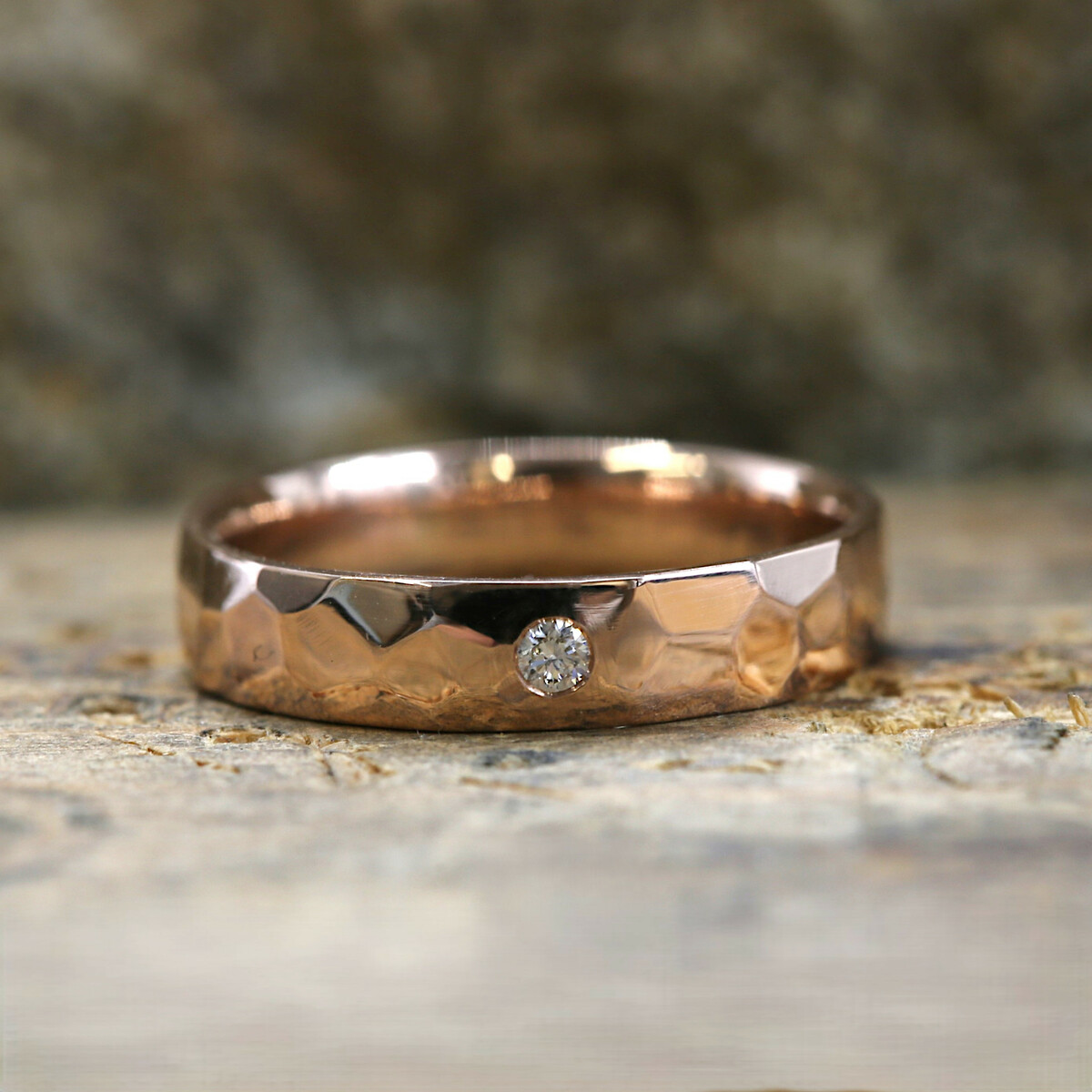 Rock gold red and diamond 2 mm - polished - gold wedding band