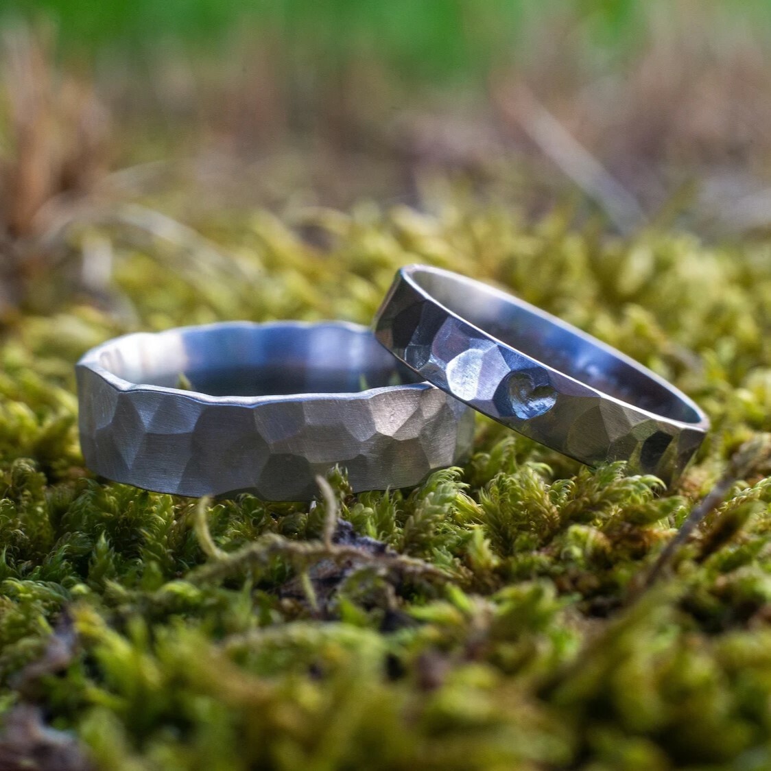 Our rings are handmade with honesty, love and passion for our work in our blacksmith´s workshop. For their production we use damasteel, titanium, stainless steel or precious metals. Because they are handmade, each ring is unique and no two rings are exactly alike. You always get a unique original ring that you can be proud of.