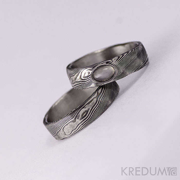 Our rings are handmade with honesty, love and passion for our work in our blacksmith´s workshop. For their production we use damasteel, titanium, stainless steel or precious metals. Because they are handmade, each ring is unique and no two rings are exactly alike. You always get a unique original ring that you can be proud of.