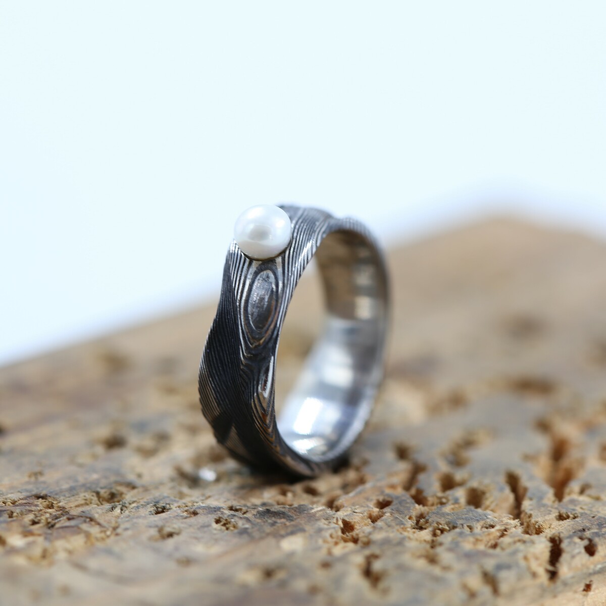 Home > Katalog > Wedding Rings > Damasteel > Víla vod a perla, dřevo - Zásnubní prsten nerezová ocel damasteel, vel. 54, CR5795